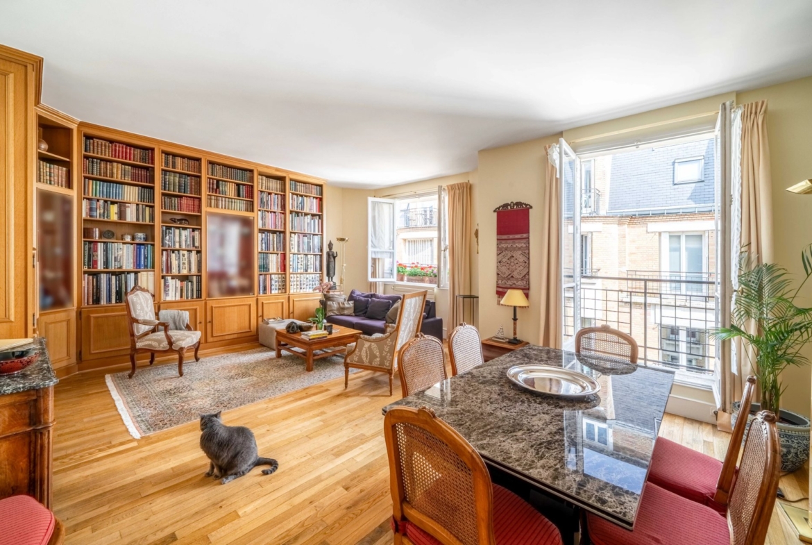 Bathed in light, it boasts meticulous finishing touches: custom-made bookcases, elegant dressing room, armored door and refined paintwork. An intercom with camera ensures optimal access control. The 2.91-meter high ceiling enhances the feeling of space and comfort. Materials, paintwork and finishes: every detail of this property has been meticulously thought through.