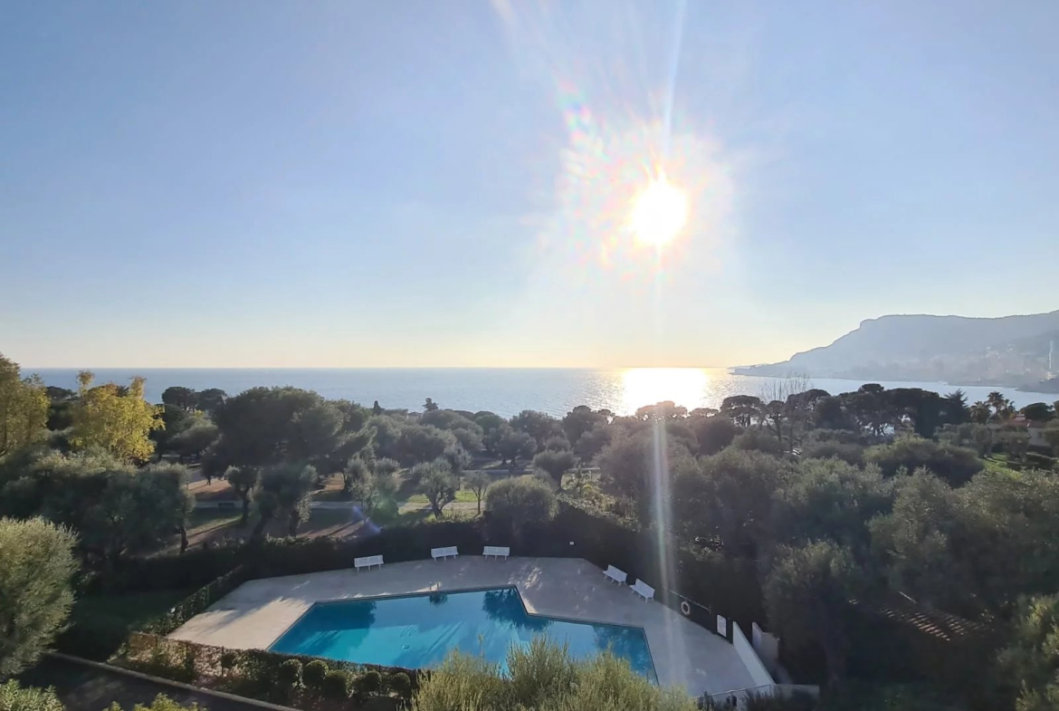 Just a few minutes from Monaco, in a luxury residence with caretaker and swimming pool, rare 4-room apartment offering magnificent panoramic views of the sea and Monaco.