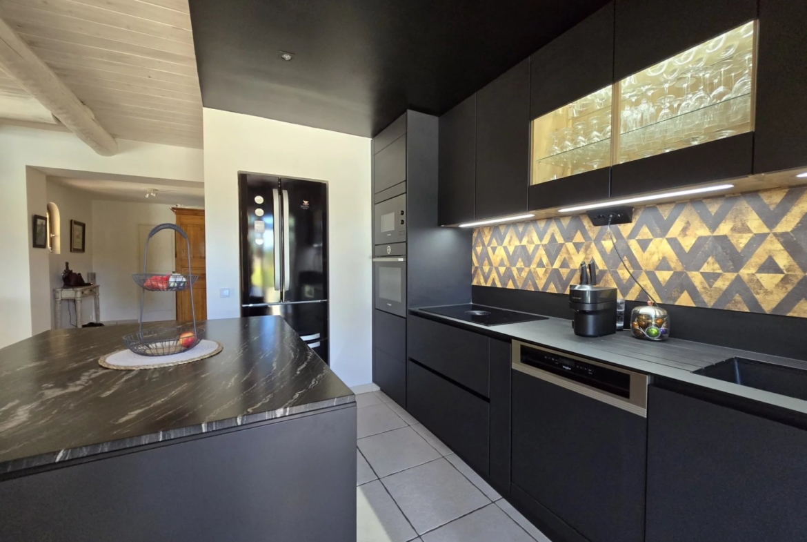 In annexes: large independent apartment with living room, equipped kitchen, bedroom, bathroom and mezzanine + an outbuilding detached from the villa consisting of a guest bedroom with bathroom.