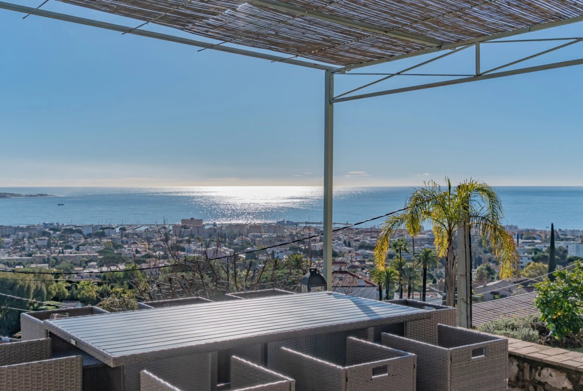 Golfe-Juan – Sweeping views out over the Mediterranean Sea from this charming villa with apartment