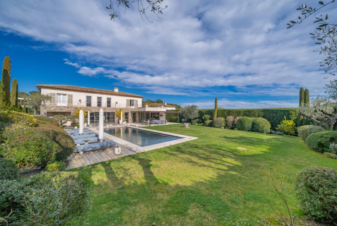 Co-exclusive listing: In absolute tranquility, within a small private estate of just a few luxury villas, stands this superb architect-designed home inspired by a traditional bastide, featuring contemporary interiors.