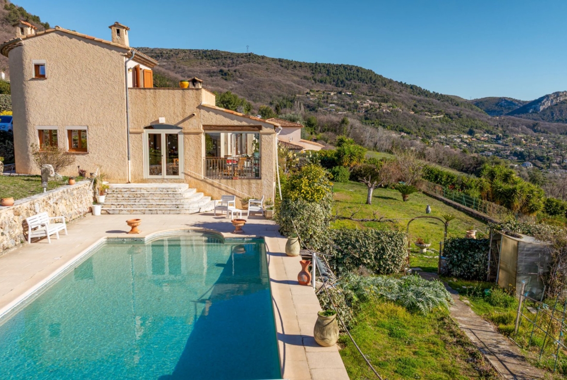 Exceptional view from Cap Ferrat to Cap d’Antibes, all the way to the Esterel massif, offering magnificent sunrises and sunsets for this 6-room Provencal villa with pool plus annexes.