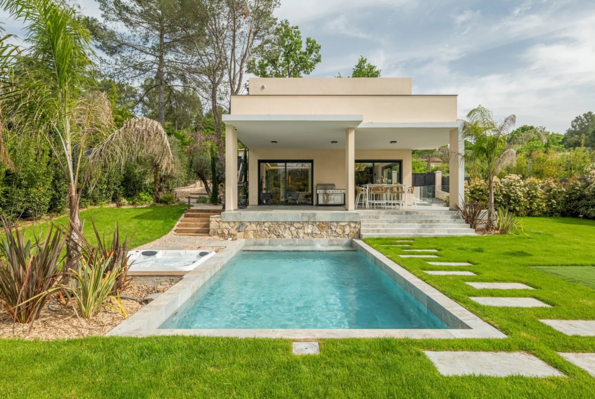 Its exceptional location – just 5 minutes from the historic center of Valbonne and 10 minutes from Mougins – is sure to delight both your family and guests.